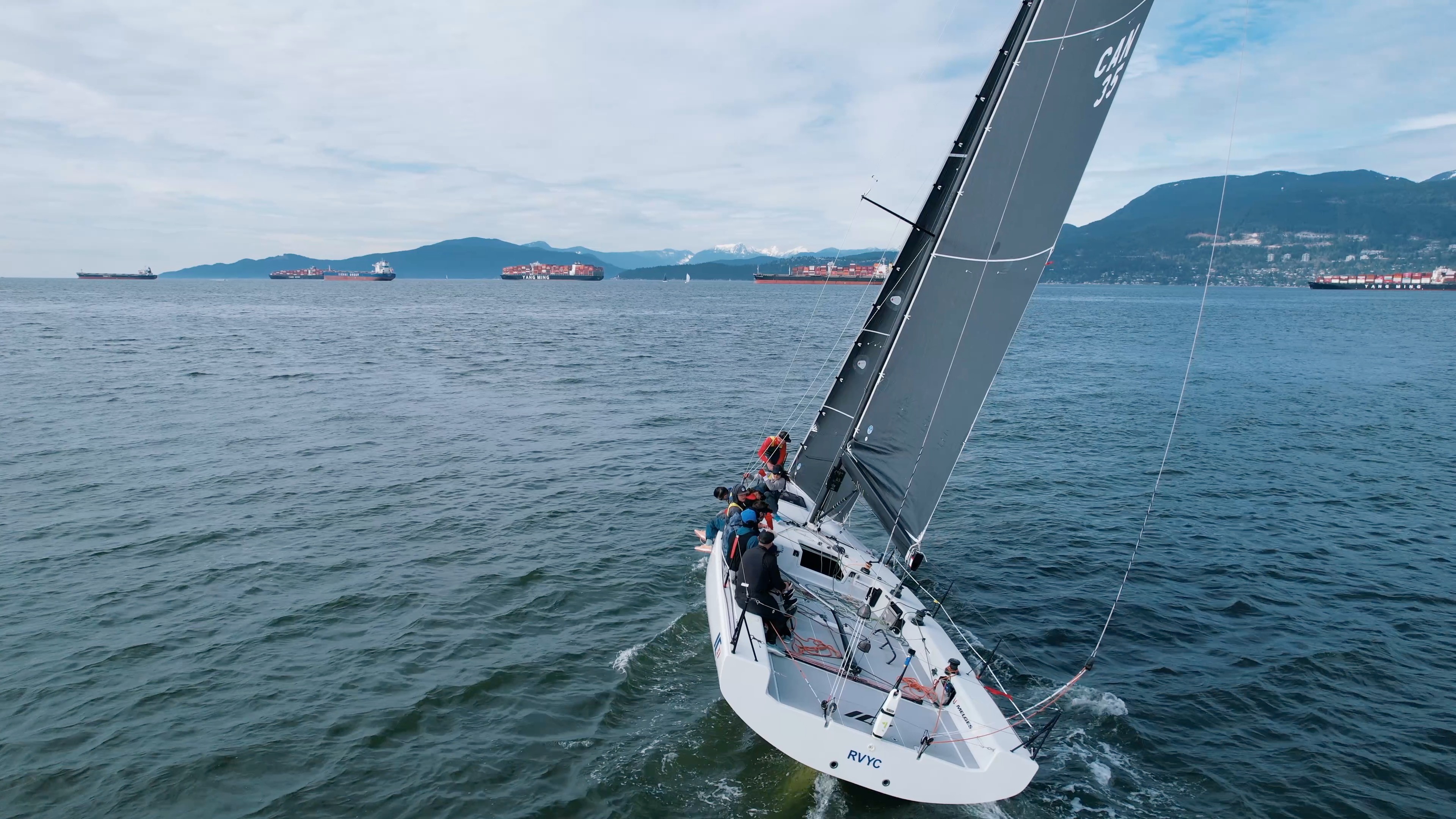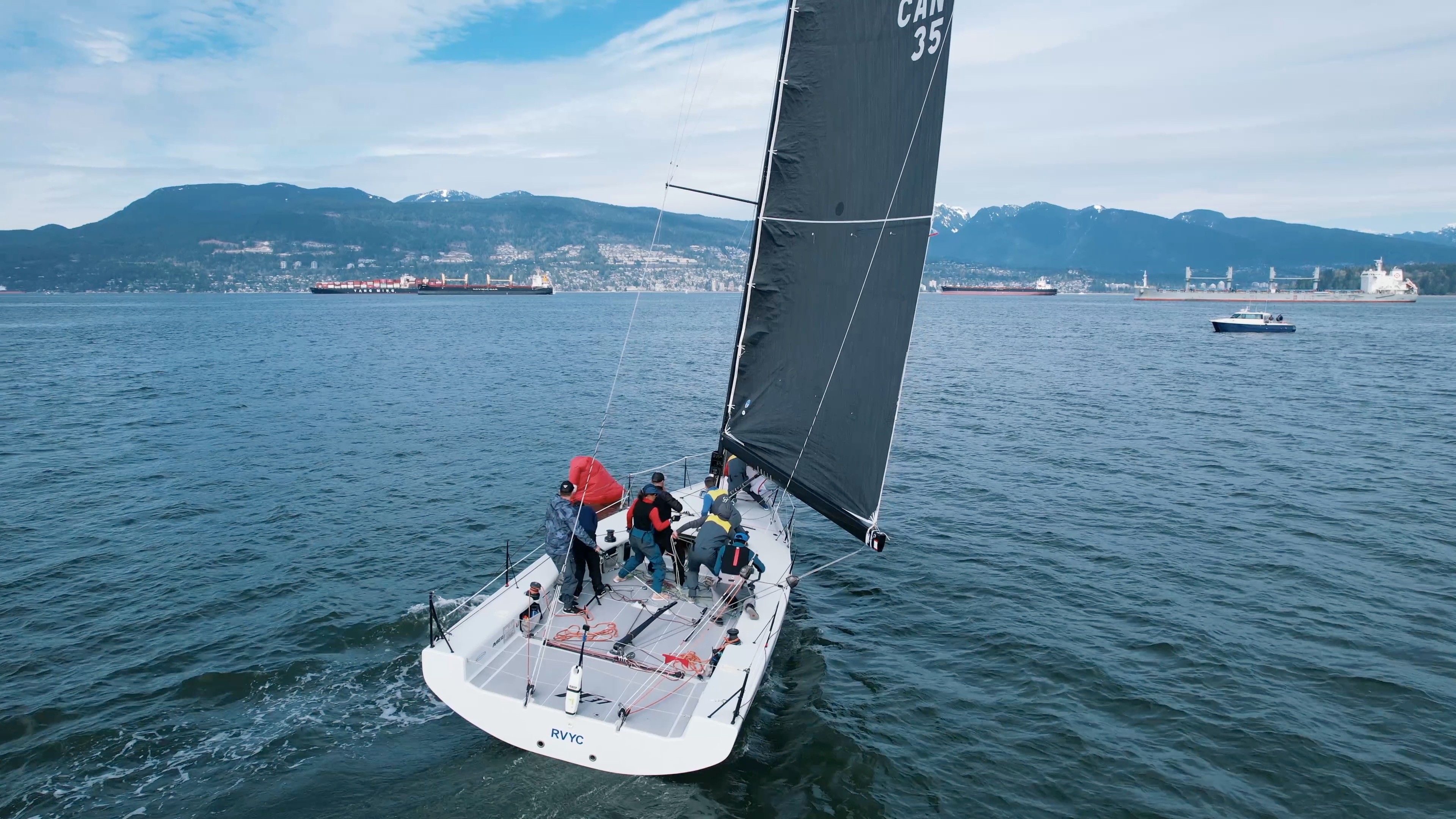 Filmed for the Royal Vancouver Yacht Club, this shoot captured the IC37 International Team during the VARC Opener in a steady westerly breeze across English Bay. Using both stabilized and FPV drone footage, the content was created as promotional material and to provide the team with detailed angles to review sail trim and boat handling. The final edit showcased clean manoeuvres and competitive action from unique perspectives.